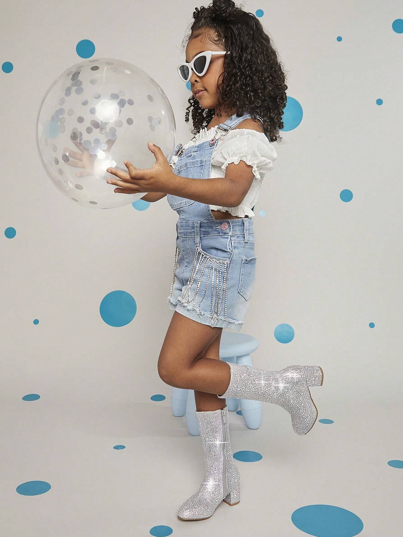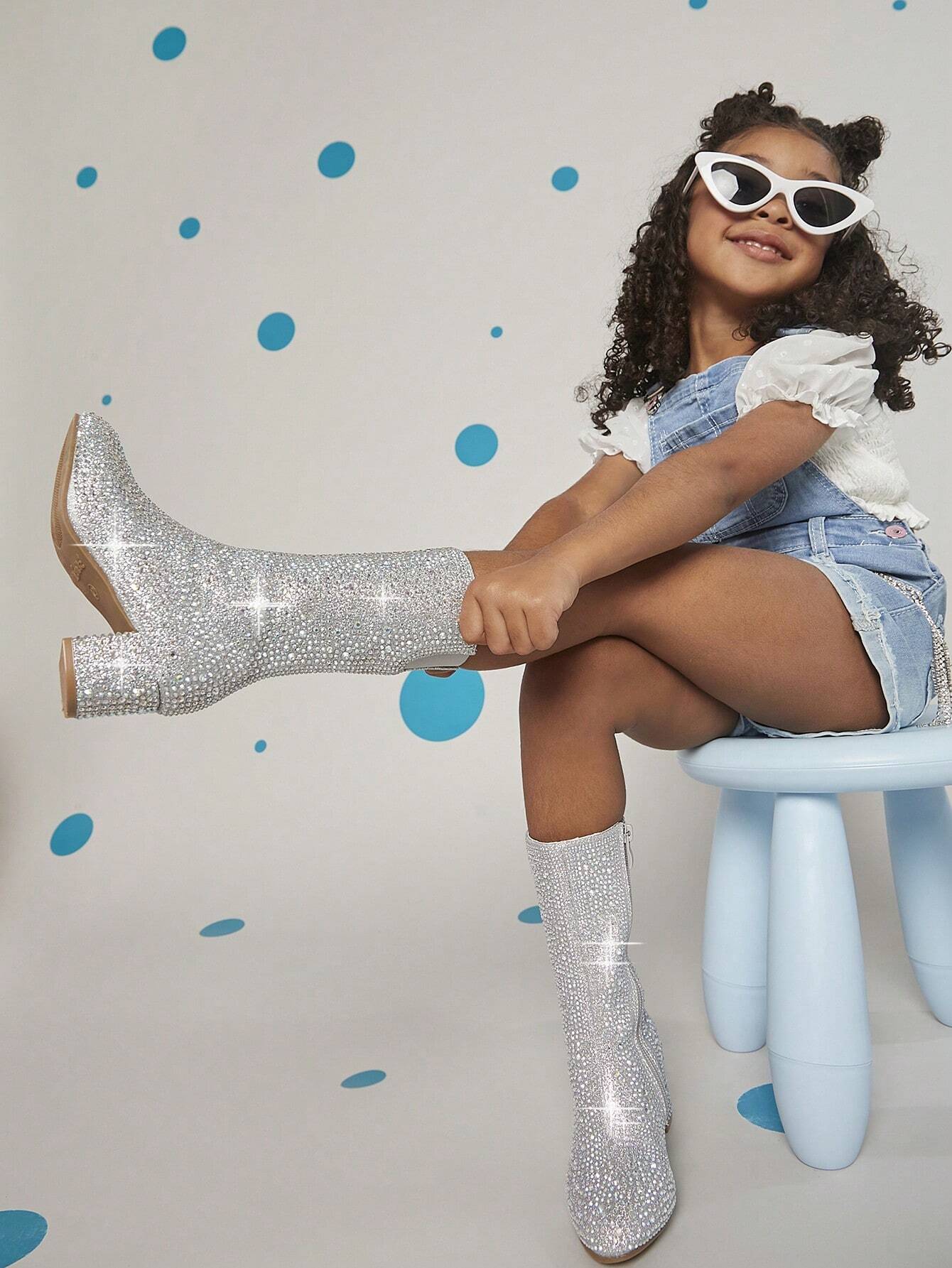 Rhinestone Side Zipper Chunky Heeled Boots